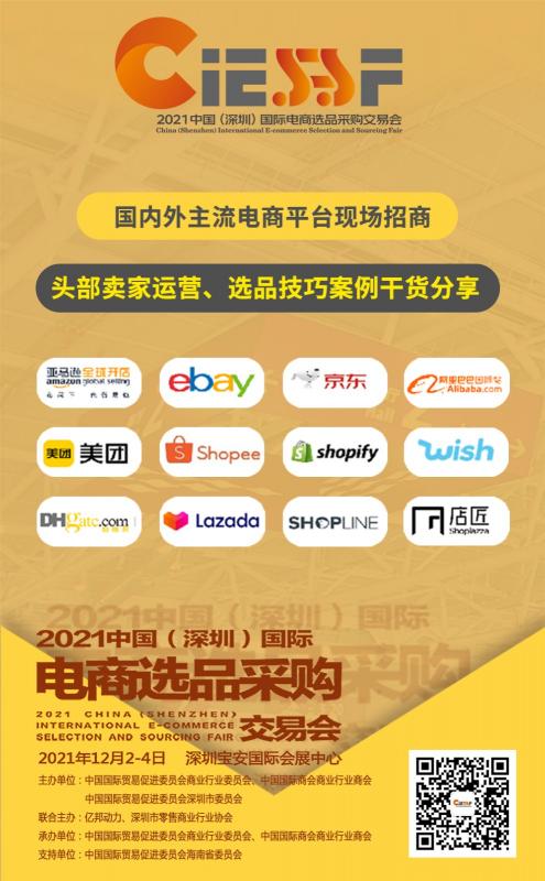 2021中国(深圳)国际电商选品采购交易会CIESSF以“精品选品、创客引领、人才对接、双线驱动”为宗旨,打造精品展示与选品采购交易于一体的大型行业盛会,全方位打造跨境电商产业闭环生态。