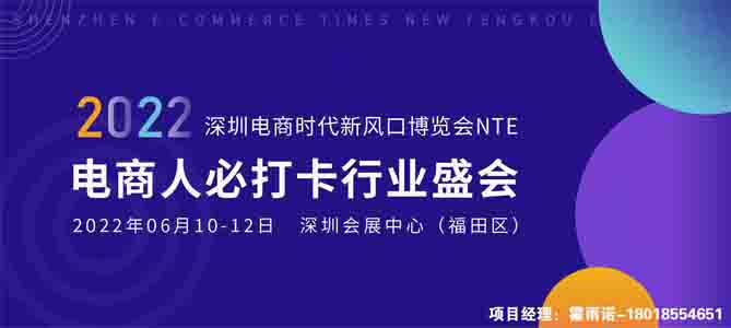 2022深圳电商时代新风口博览会NTE暨深圳网红直播电商及短视频展于6月10-12日,深圳会展中心(福田区)盛大召开!本届展会由深圳电商时代新风口博览会组委会,上海雷科展览有限公司,上海华创博展展览有限公司主办,本次博览会展出面积50000平方米,3大展馆,1000+参展企业,数百家行业媒体竞相报道,将吸引网红等专业买家团6万多人次现场洽谈!数百万人观看直播,助力传统企业提升参展品牌曝光度对接电商直播供应链、买家团、网红MCN机构等.为品牌商、渠道商、服务商提供具有商业价值的对接合作!