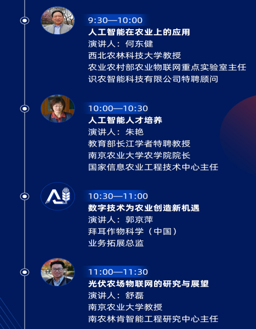 论坛将邀请相关部委领导和智慧农业领域权威院士、专家、学者和企业家针对人工智能+农业政策支持、技术内容进行交流,共同探讨人工智能+农业发展趋势和前景