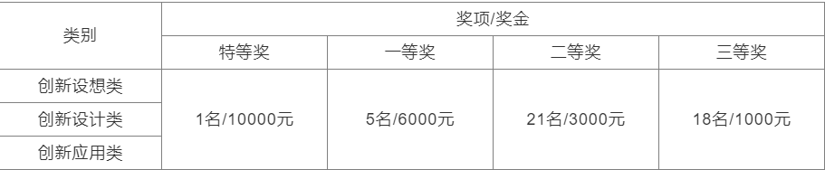 大赛设“创新设想类”、“创新设计类”和“创新应用类”三类,以自由命题方式进行比赛。