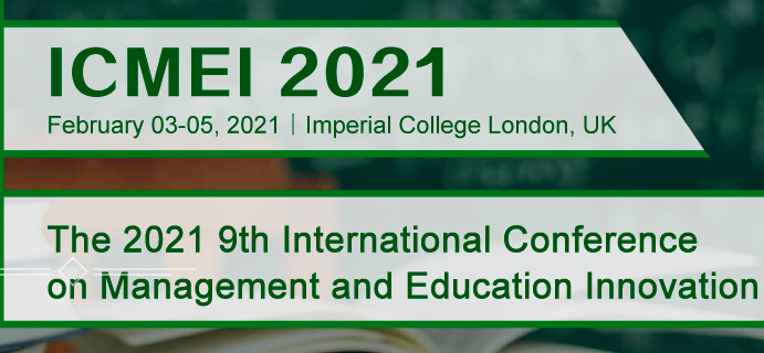 2021年第九届管理和教育创新国际会议(ICMEI 2021)将于2021年2月03日至05日在英国伦敦帝国理工学院举行。 会议主办方诚挚邀请各界相关学术领域的学者参加本次会议,共同分享,讨论彼此的研究成果。欢迎各界相关研究领域的学者踊跃投稿参会。