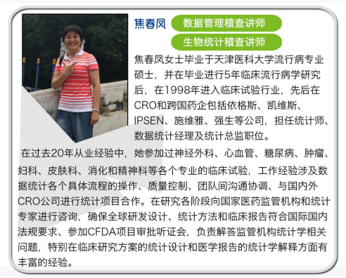 七、生物统计稽查 (Biostatistics Audit):焦春凤 本模块共2次小节培训,培训时间及要点如下: